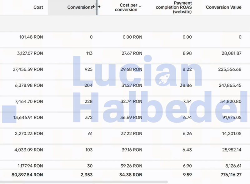 776.116 lei în vânzări cu 80.897 lei investiți în TikTok Ads - ROAS 9.59 - Nișă: Produse copii