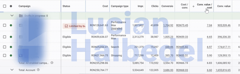 1.665.816 lei în vânzări cu 250.764 lei investiți în Google Ads - ROAS 6.60 - Nișă: Home & Deco